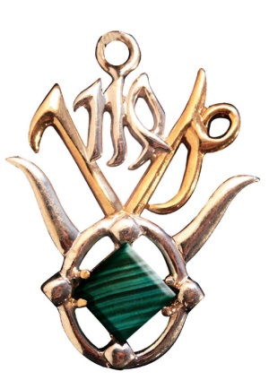 Ο μαλαχίτης είναι ένας λίθος που ανάμεσα σε όλα τα υπόλοιπα, μπορεί να "καθαρίζει" παρελθοντικά ψυχικά και ενεργειακά τραύματα, ενώ τα Γήινα σύμβολα που απεικονίζονται και σχηματίζονται στο μενταγιόν φέρνουν ασφάλεια και γείωση.