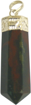 Μενταγιόν αιχμή από αιματόπετρα με ασημένιο δέσιμο.