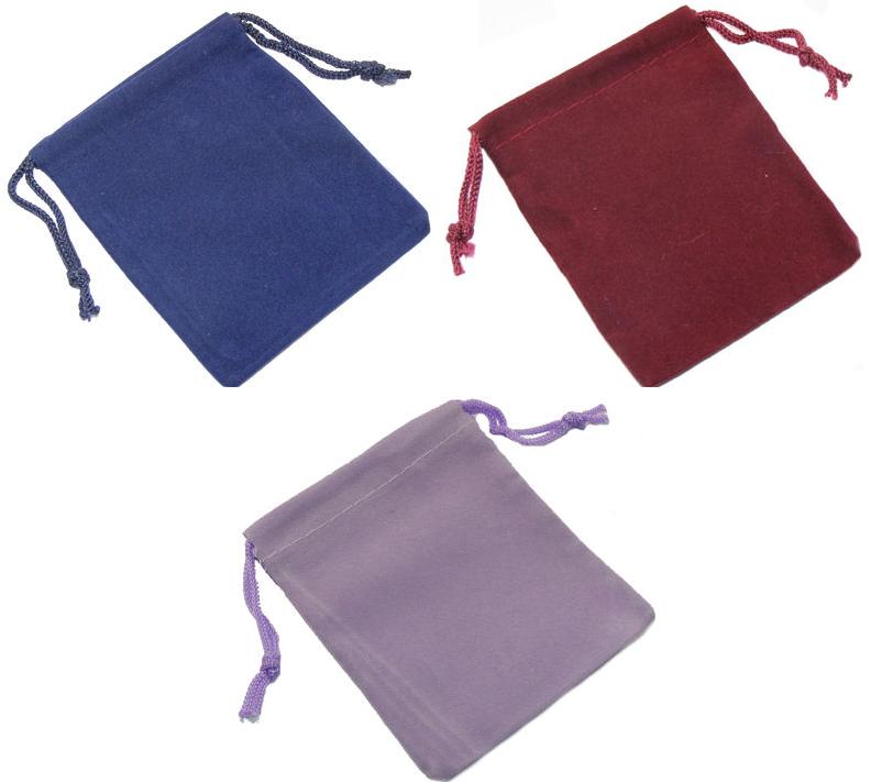 Μικρά βελούδινα πουγκιά σε 3 χρώματα : μπλε σκούρο, μωβ λιλά και βαθύ κόκκινο βουργουνδίας.