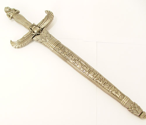 Η λαβή έχει το σχήμα της Βασίλισσας Κλεοπάτρας ενώ η θήκη είναι στολισμένη με ιερογλυφικά και άλλα ιερά σύμβολα της Αρχαίας Αιγύπτου.