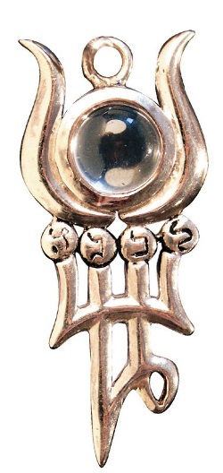 Ένας χαλαζίας βρίσκεται μέσα σε μια ημισέληνο ενώ κάτω από την ημισέληνο είναι σχεδιασμένο το μαγικό σύμβολο του Phul, του πνεύματος της Σελήνης, το οποίο φέρνει αναγέννηση και μεταμόρφωση.