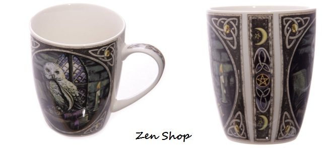 Κούπα της Lisa Parker από πορσελάνη υψηλής ποιότητας με κελτικές μπορντούρες και την Κουκουβάγια της Μαγικής Γνώσης.