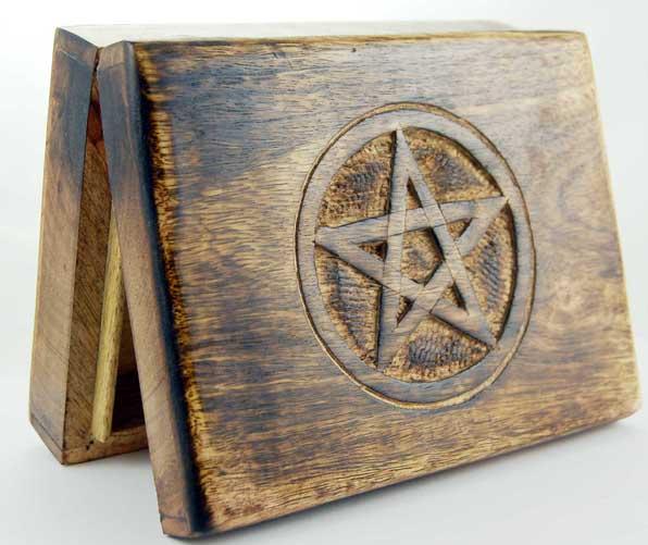 Ορθογώνιο ξύλινο κουτί με σκαλιστή πεντάλφα.